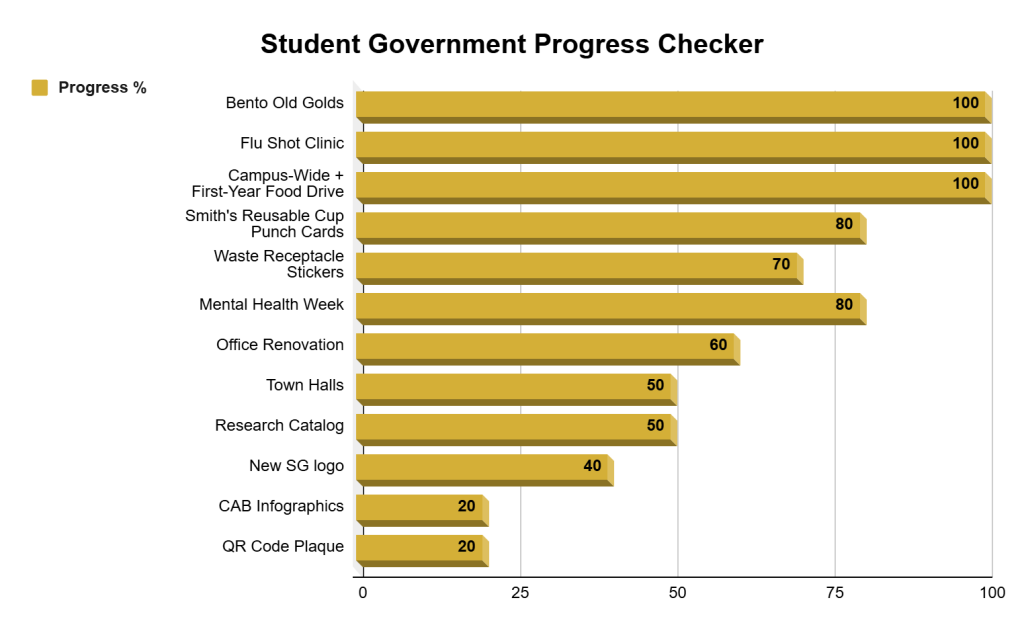 The goal of this progress checker is to enhance the transparency of Student Government. By defining milestones, the Wake Forest community can track progress on specific initiatives and hold each committee accountable for measuring success.