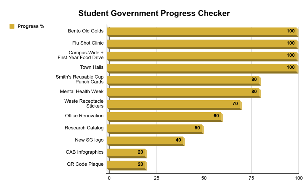 The goal of this progress checker is to enhance the transparency of Student Government. By defining milestones, the Wake Forest community can track progress on specific initiatives and hold each committee accountable for measuring success.