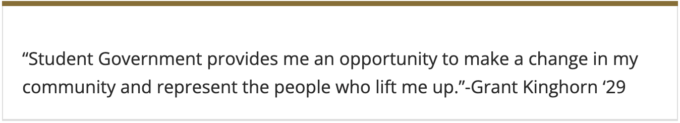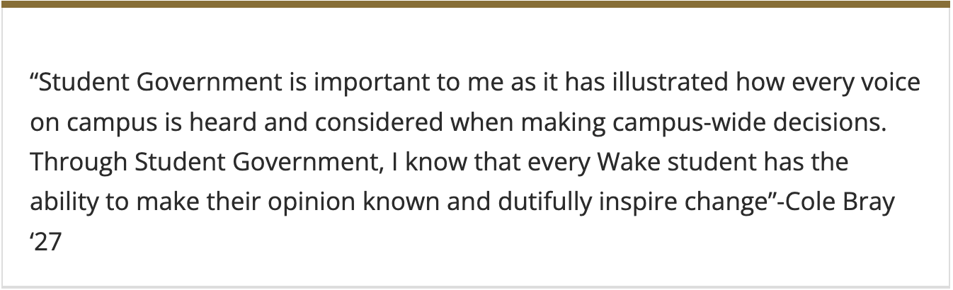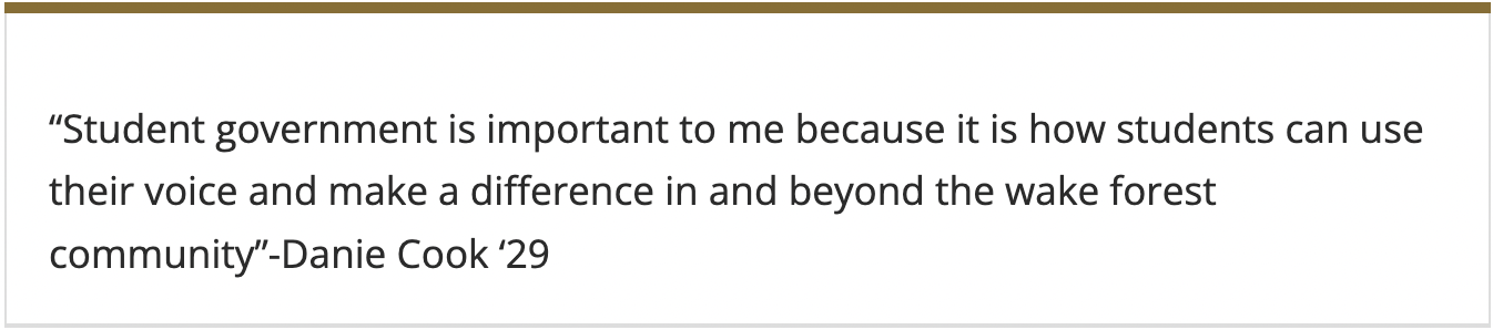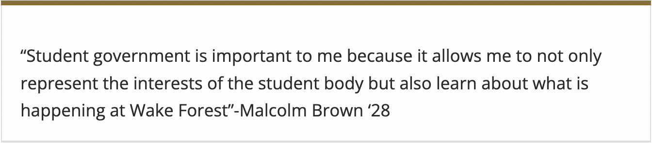 The Student Government Memorial Fund, established by family and friends of Tyler Stone (’97), is a heartfelt initiative designed to support and honor Student Government Officer volunteers. This fund aims to recognize and empower these outstanding individuals who dedicate themselves to serving their peers and enhancing the Wake Forest experience.